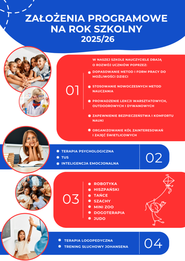 Nasza szkoła zapewnia realizację programów nauczania i wychowania zgodną z obowiązującym prawem oświatowym, a odpowiadając na zainteresowania uczniów przygotowaliśmy bogatą ofertę zajęć dodatkowych.